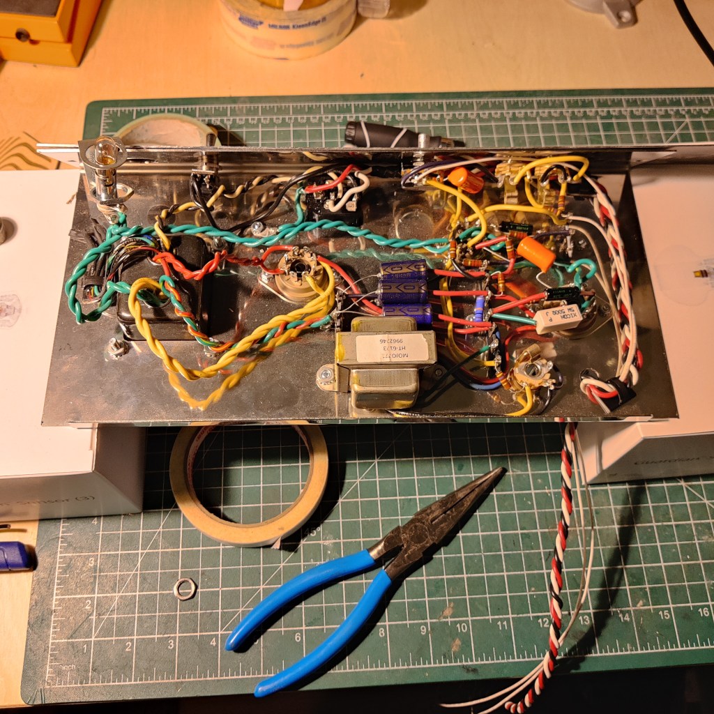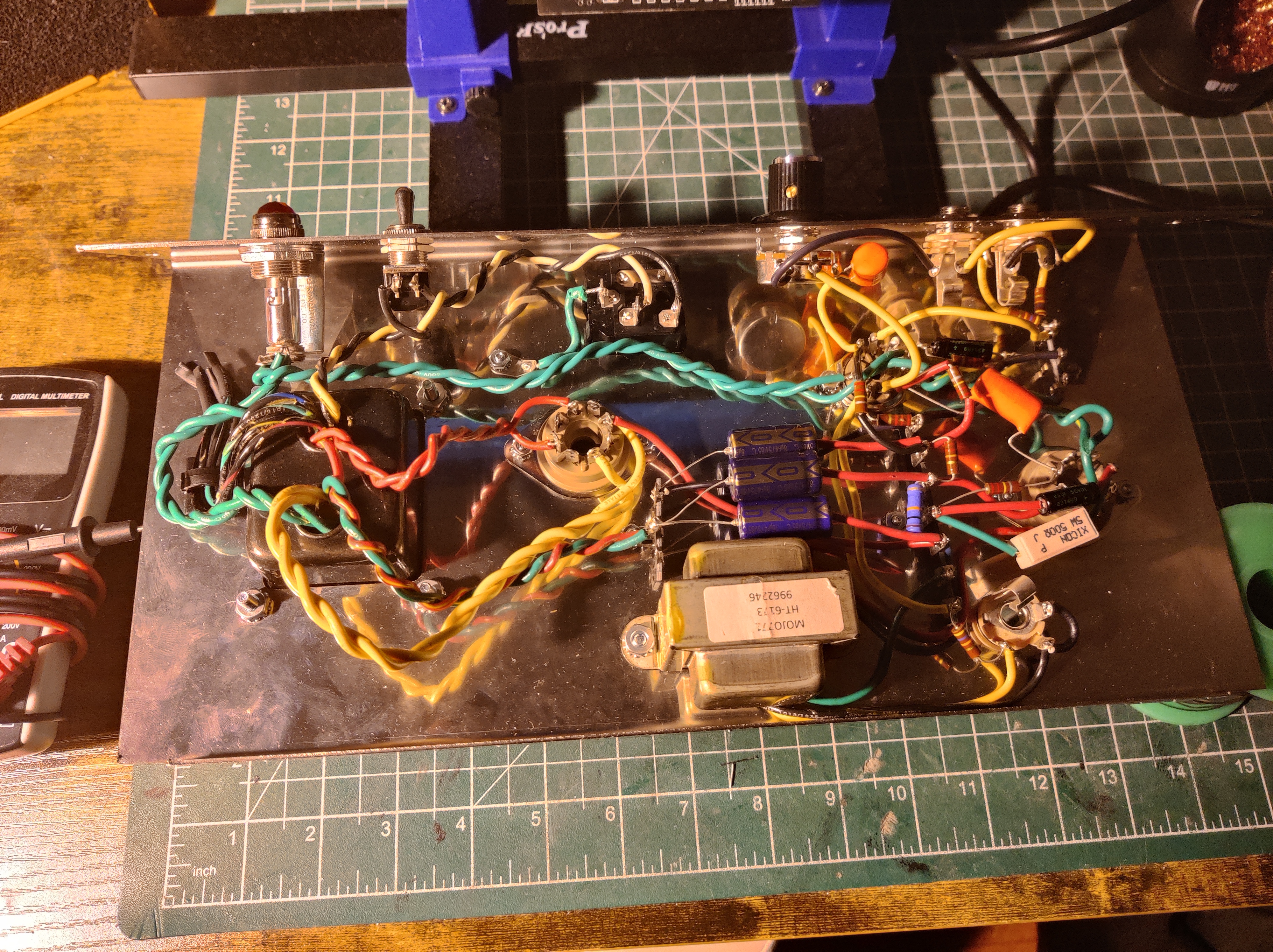 I happened to have a bunch of spare parts laying around minus a chassis, some tubes, transformers, and other bits of simple hardware. I was able to score a schematic for a GA-5 and the harder-to-find electrical components I needed from Mojotone. Everything else was either already on-hand or easily procured from hardware shops around Toronto.