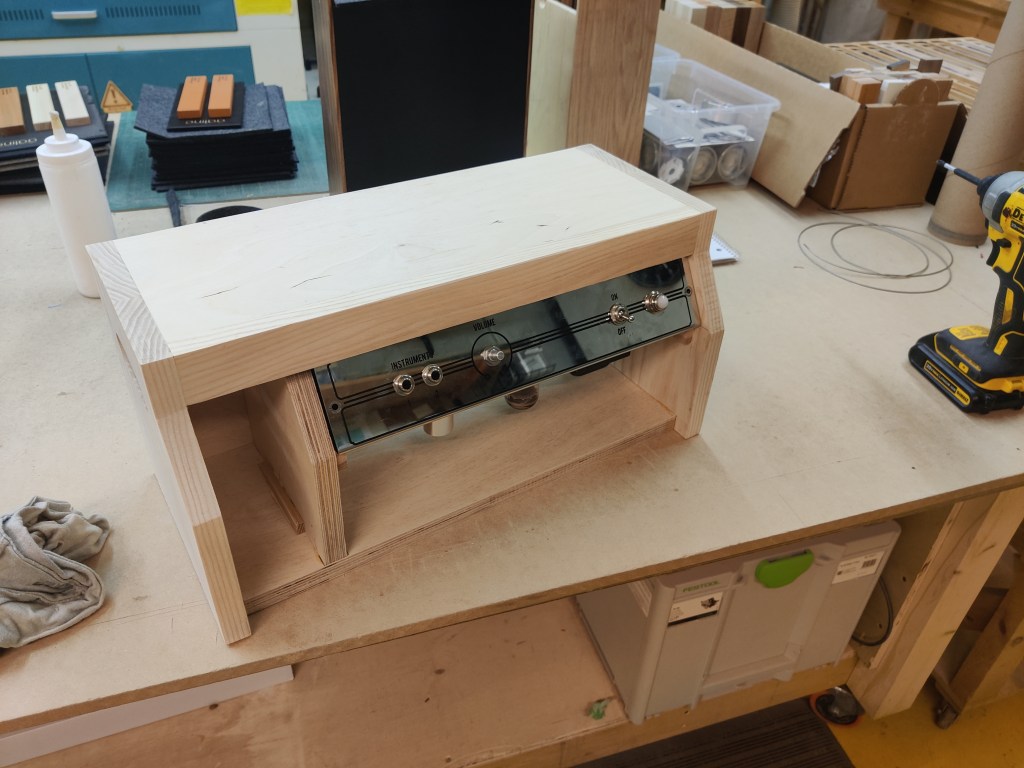 For a 5W Amp this thing rips, especially when hooked up to the matching amplifier cabinet I built. I also ended up adding a guage to the instrument inputs to gauge the level of the input signal when feeding pedals into the amp. Because there is still a very minimal preamp stage in this amplifier, it is possible to unintentionally create some breakup if a signal comes in too hot. The gauge allows for a bit more control of that feature.
