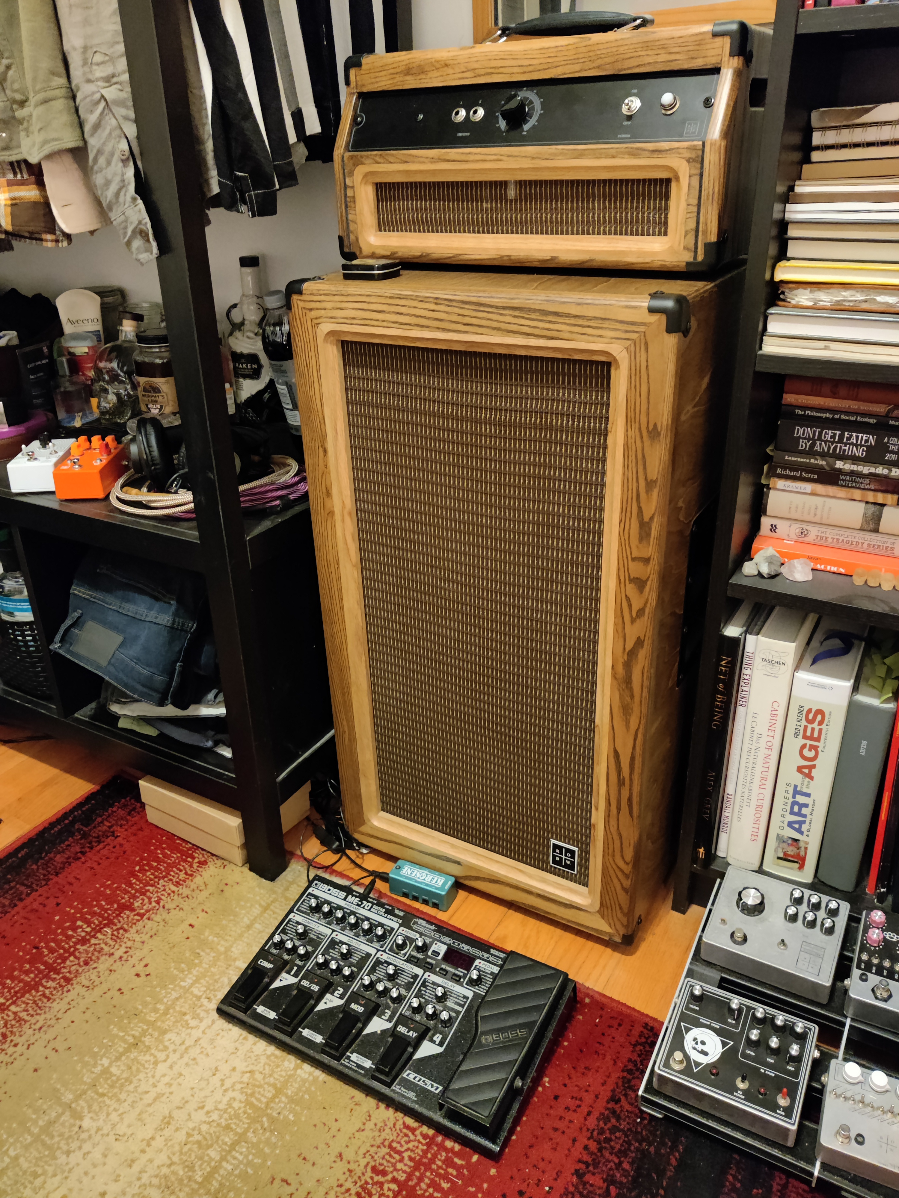 I needed a practice amp and I knew I wanted something tube-based without any fancy bells or whistles. For that matter, all I really needed was a power amplifier that I could feed pedals into to shape whatever sound I want. After some exploring, I found myself drawn to something like a Gibson GA-5 or a ’57 Fender Champ since both have practically non-existant preamp stages (when it comes to coloring the sound) and a single knob for volume.