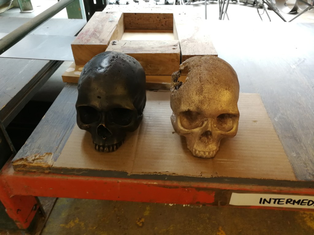 This is some documentation from my last year in University. I took a foundry class and decided it would be cool to mold an anatomical model of a skull and try to cast it in bronze. This is some photo documentation for that project. I recently also built some display plinths for these sculptures as well. I’ll likely upload some photos of those as well since they turned out pretty neat.