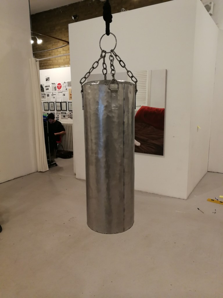 It was shown publically for a couple weeks at Gallery 1313 – which is now coincidentally right in my neighborhood. There are tales that someone tried to give it a good smack while it was on public display. I feel like some artists may be appalled by something like that – but dude, it’s a punching bag made of steel. I’m not worried about it.